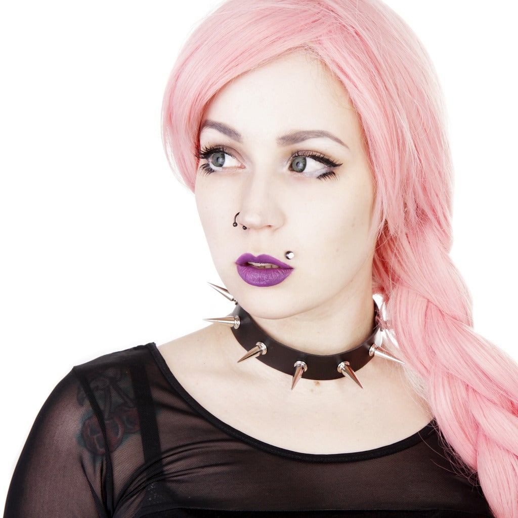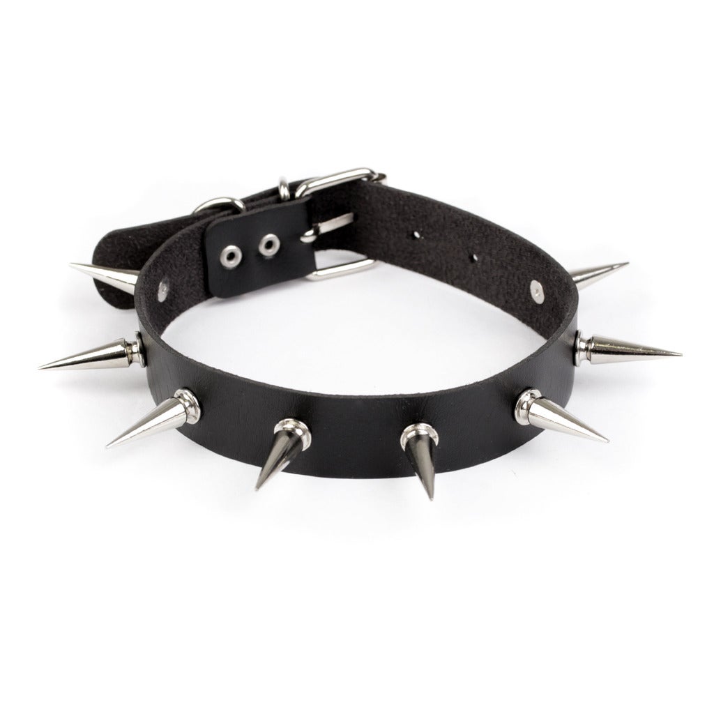 Tyylikäs musta kaulapanta pitkillä piikki niiteillä.