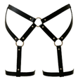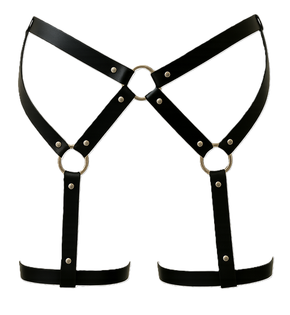 Tyylikäs jalkaharness tekonahkaa. Jalan ympäri menevissä remmeissä sekä vyöllä solkikiinnitykset.