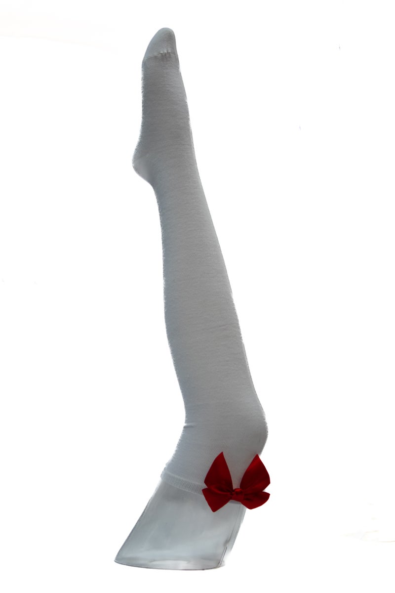 Valkoiset Ylipolvensukat Ruseteilla - Punainen