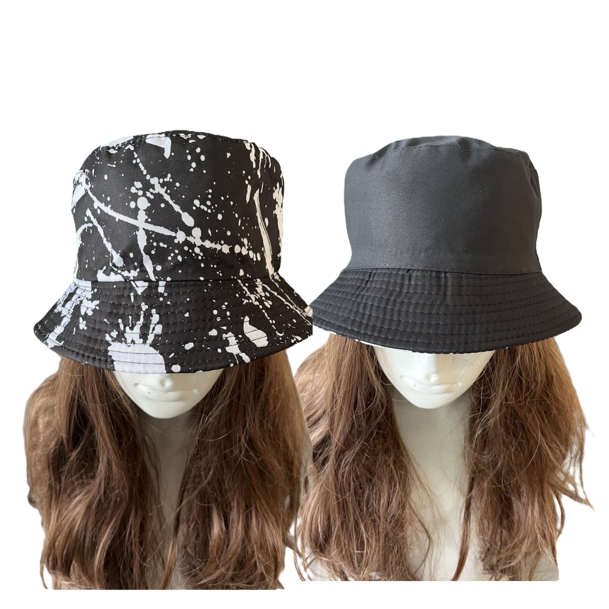 Käännettävä Fisherman Hattu -Mustavalkoinen