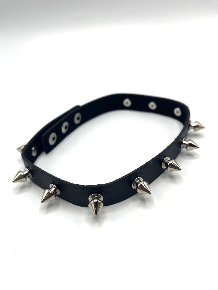 Tyylikäs musta kaulapanta kartio niiteillä. Nepparikiinnitys