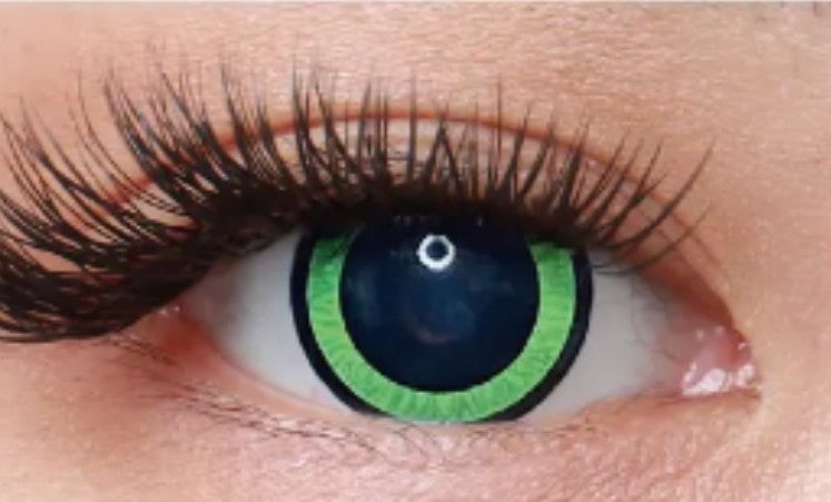 Vihreä-mustat piilolinssit vuoden käyttöajalla.