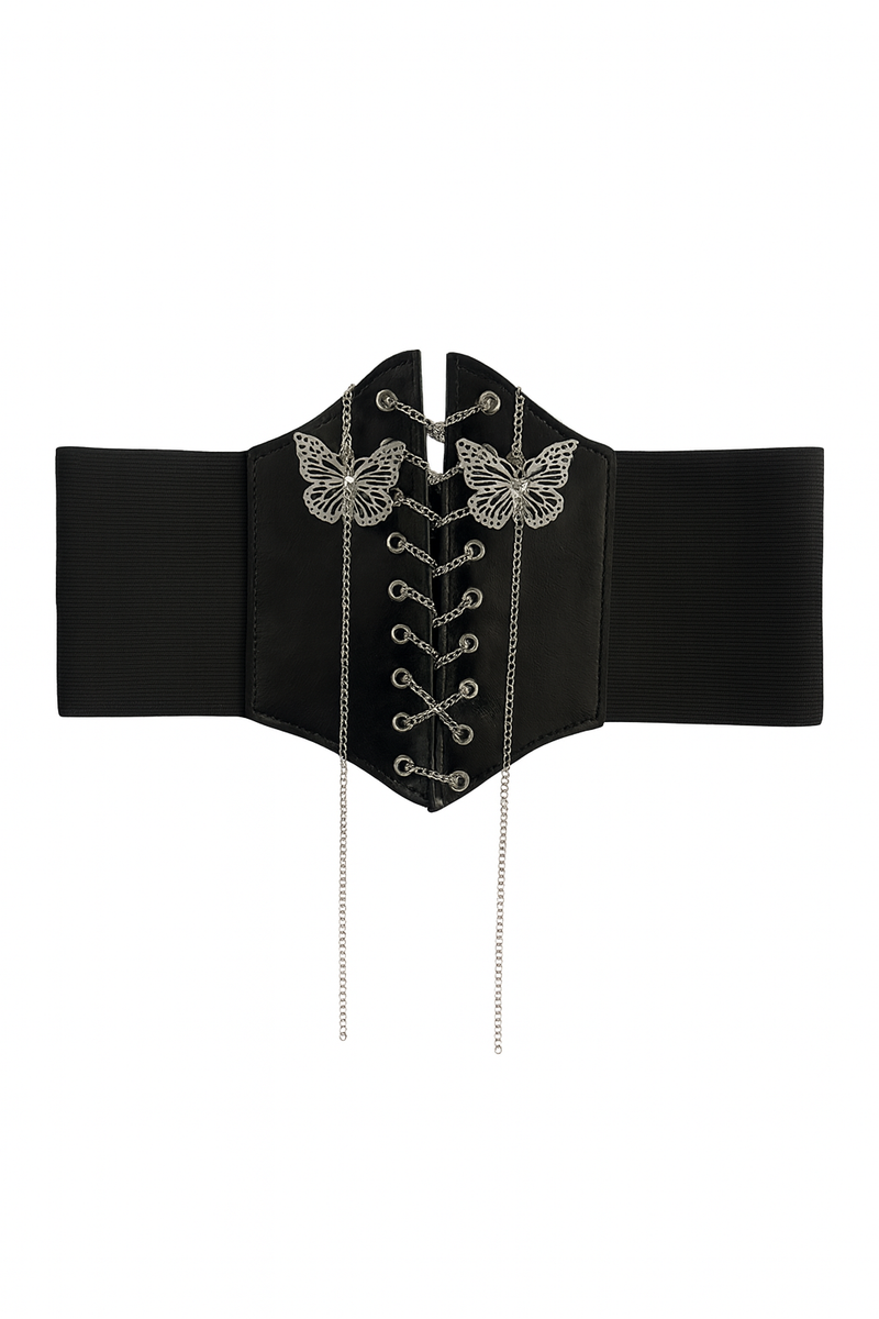 Tekonahkainen vyötärövyö ketjuilla ja perhoskoristeilla