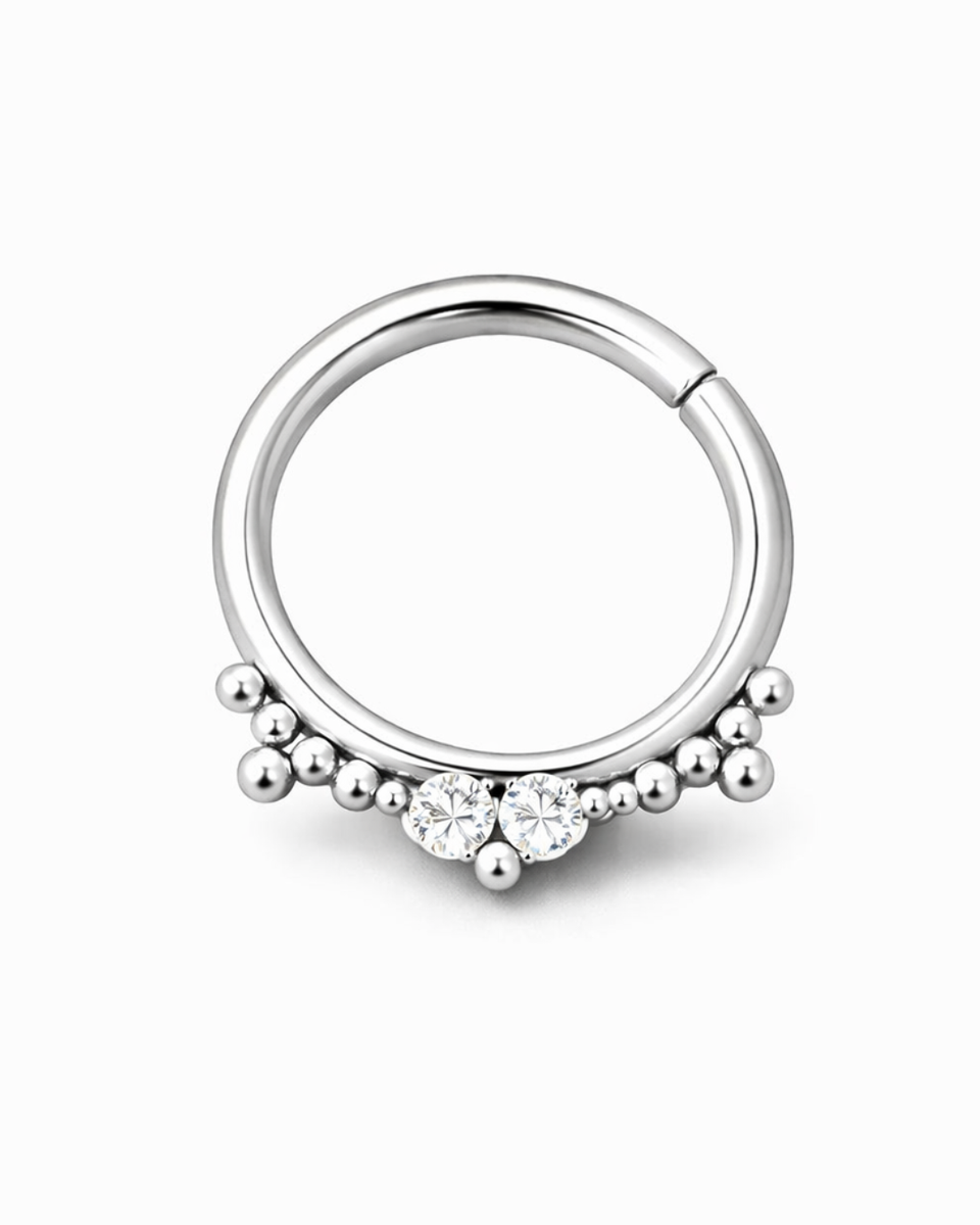 Upea kirurginteräksinen clicker rengas timanteilla.