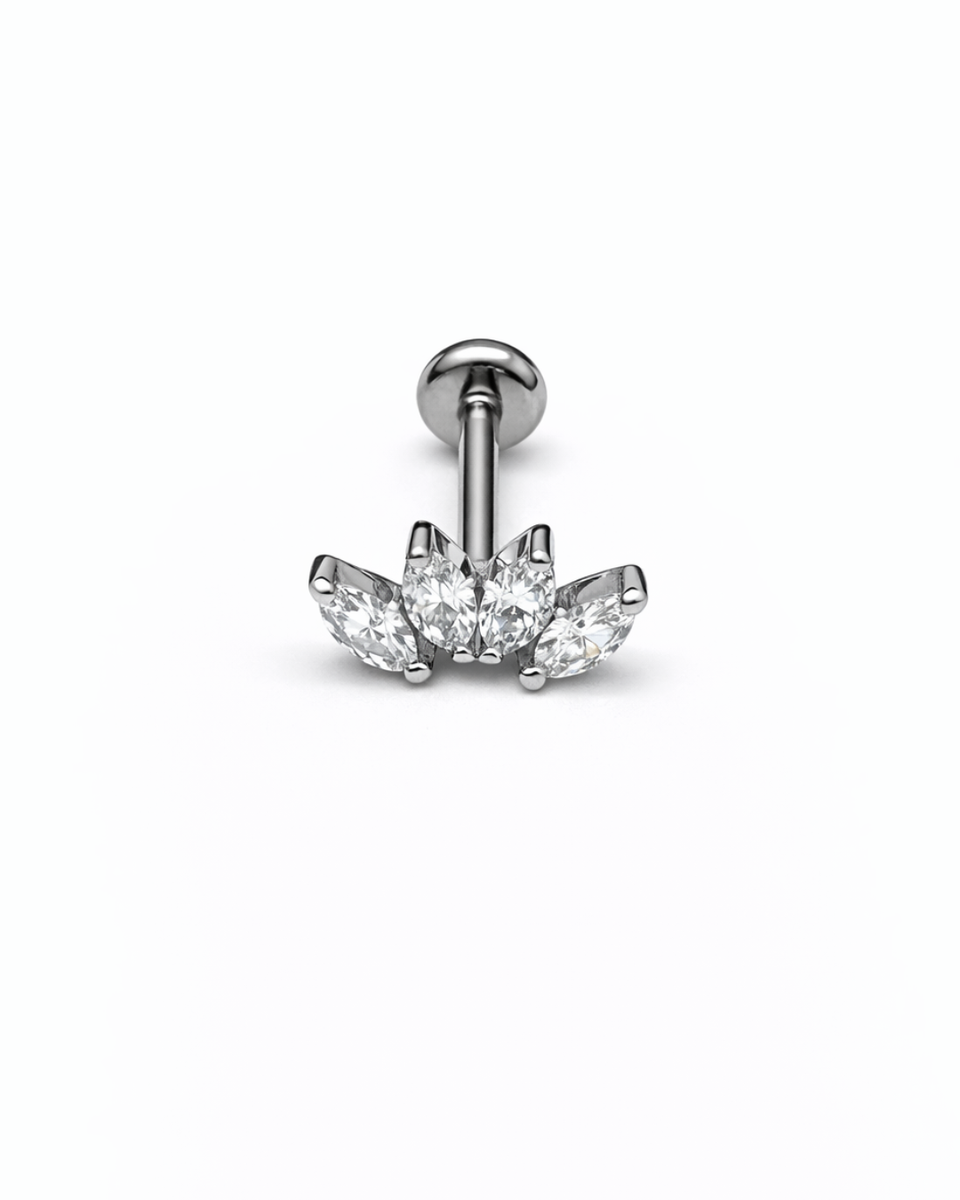 Kirurginteräksinen labret tekotimanteilla. Saatavilla kultaisen ja hopean värisenä!