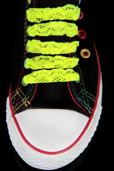 Ihanat, neonkeltaiset pitsikengännauhat.
