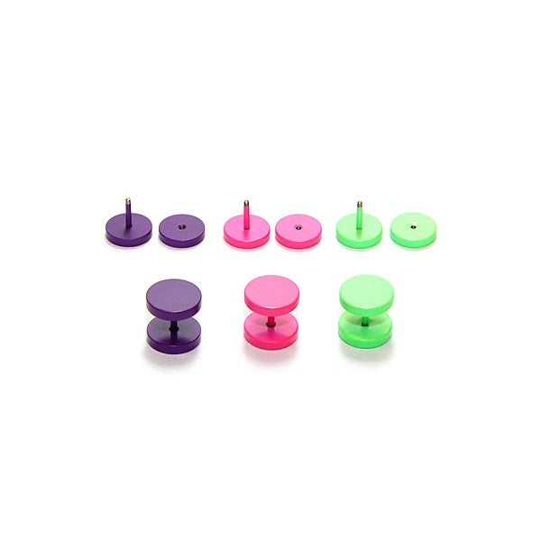 Kirurginteräksinen 1.2mm feikkiplugi-korvakoru eri väreissä. Nikkelitestattu materiaali. Hinta sisältää parin.
